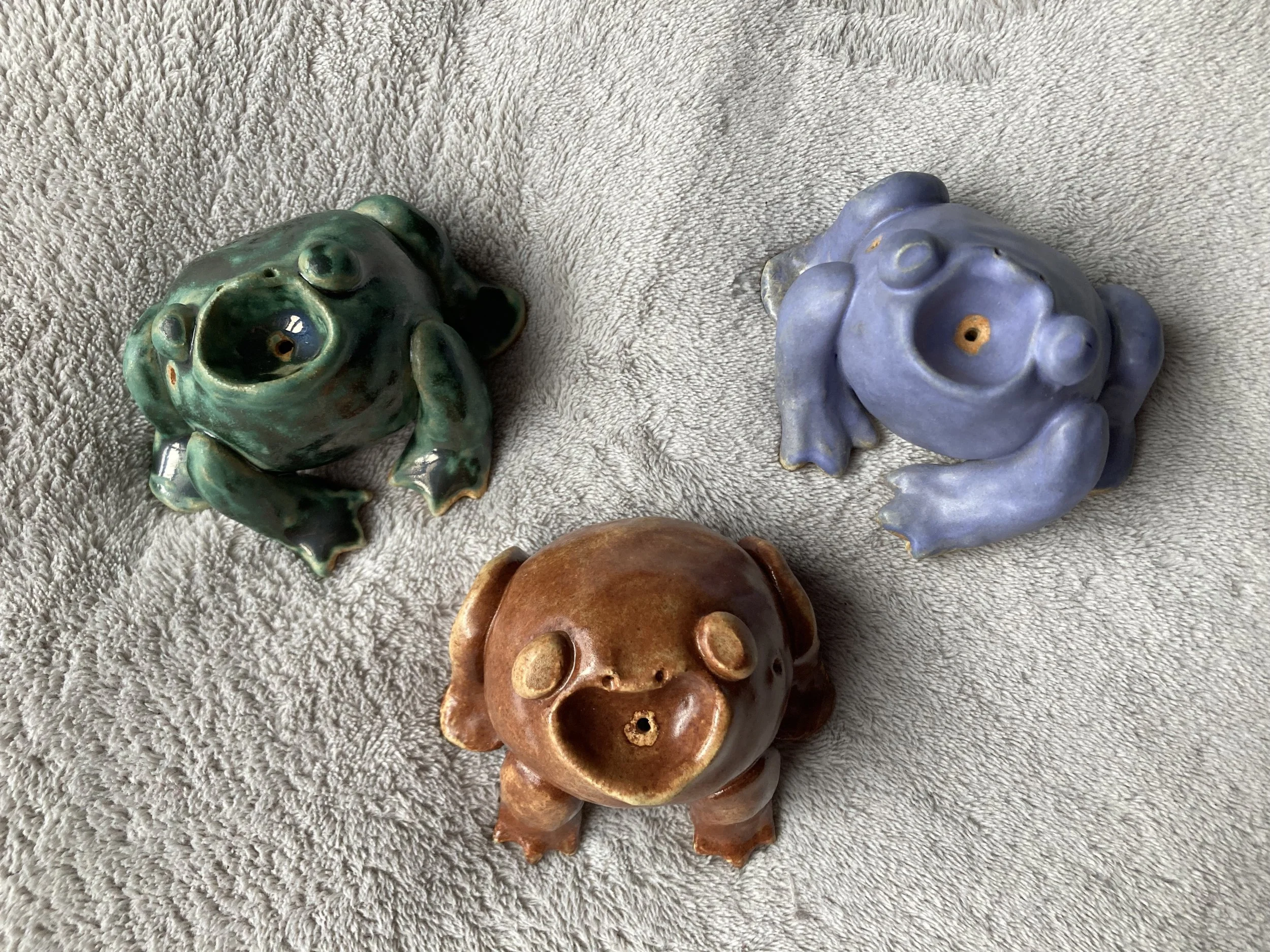 These pipes have the full body of a frog with the mouth as the bowl, the carb on the side of the head, and the butt-hole as the mouthpiece.